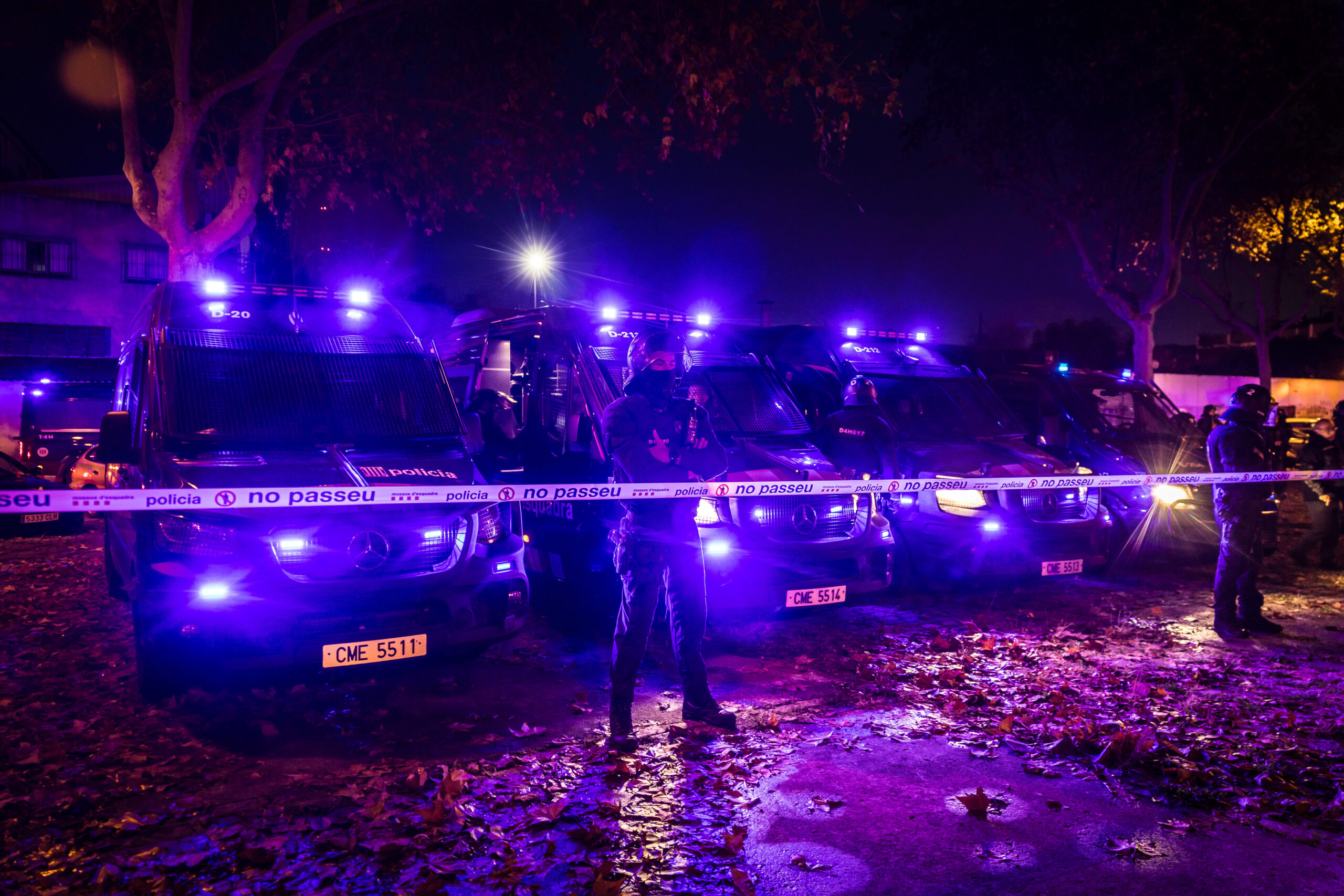 Un ampli dispositiu policial acordona la zona i apropar-se a l’edifici és del tot impossible per a tota persona que no tingui el vistiplau dels Mossos. El Sindicat de l’Habitatge, Badalona Acull i diverses entitats socials s’havien citat a les portes del B9 quan hi hagués el desallotjament.