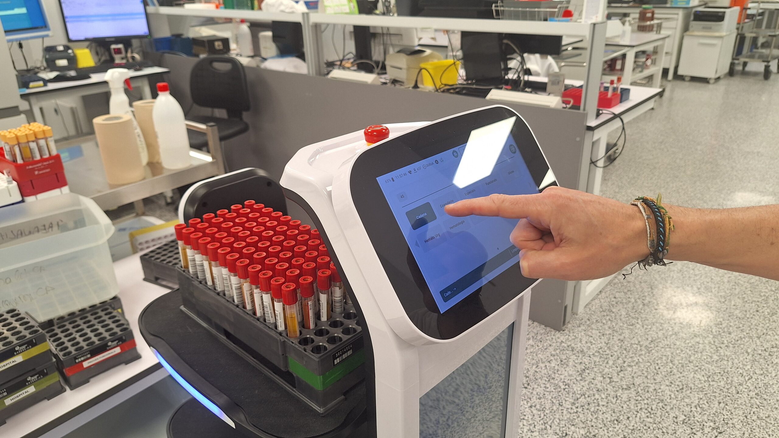 ACN Badalona – El Laboratori Clínic de l’Hospital Germans Trias ha incorporat un robot que transporta mostres d’orina, sang o sèrum a través dels seus 700 metres quadrats. Batejat amb el nom d’EMILI, que responen a les sigles Equip Mòbil Intel·ligent per a Laboratori Integrat, el giny té diverses safates i una pantalla on s’afegeixen les ordres de desplaçament i el contingut, però que també ofereix una cara per fer-lo més humà. Cada matí fa un centenar de viatges amb una desena de quilòmetres recorreguts, i mou unes 8.000 mostres biològiques. L’aparell permet invertir el temps dels desplaçaments a altres activitats, com la presa d’analítiques, i agilita el temps de trasllat, que es fa amb velocitat variable en cas que es trobi algun objecte.