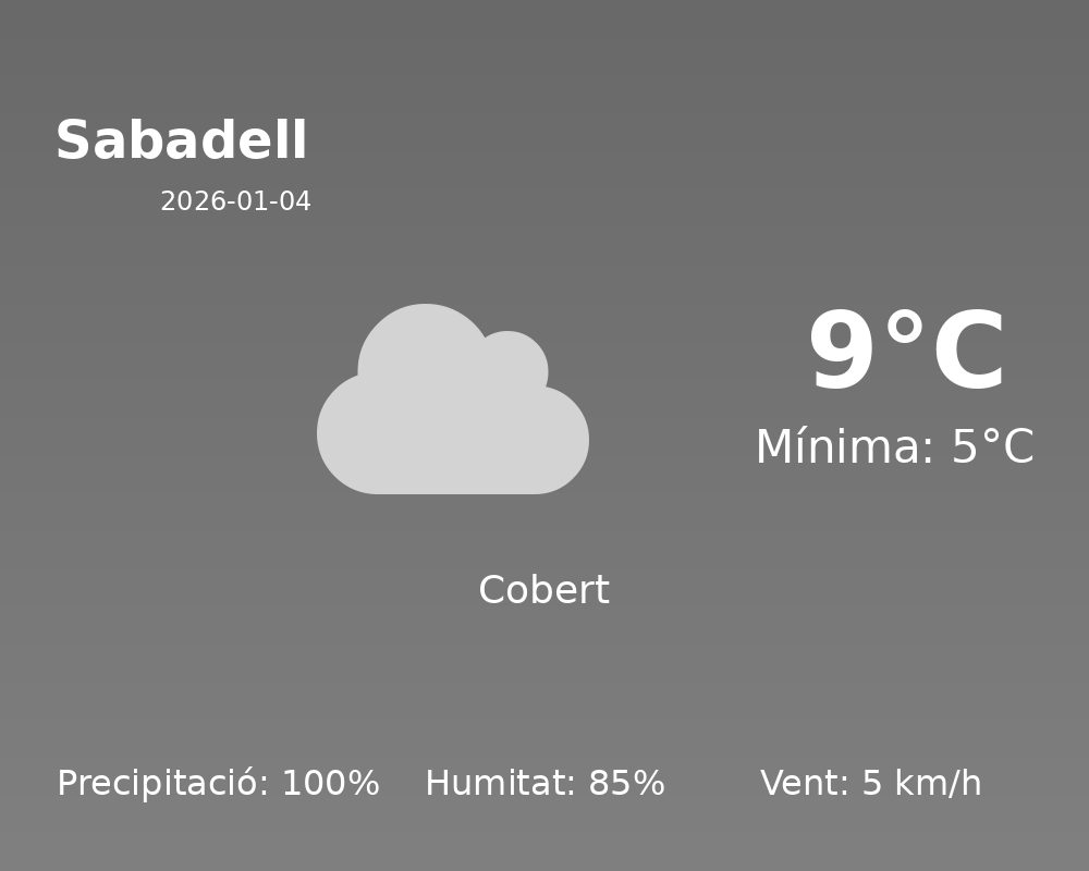 Avui, els habitants de Sabadell es trobaran amb un dia caracteritzat per pluges significatives. Segons les dades meteorològiques, s’espera un 100% de probabilitat de precipitacions, cosa que indica que hauríem de preparar-nos per a un dia força humit i plujós.