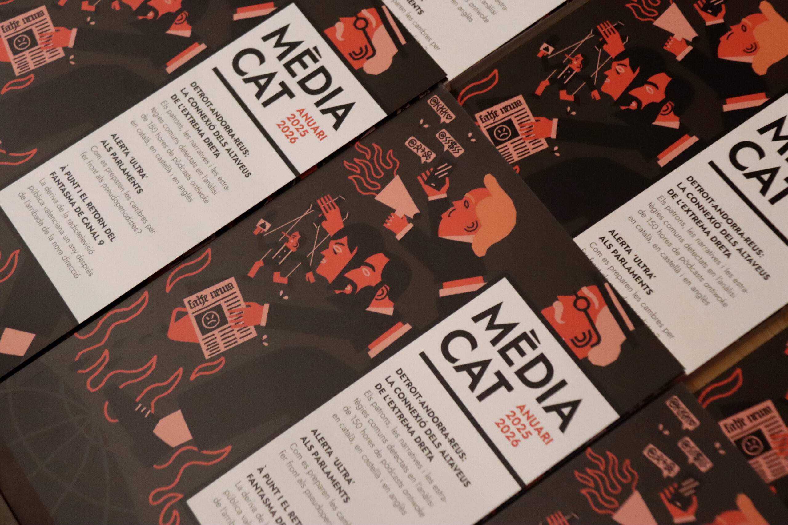 ACN Barcelona – L’anuari de Mèdia.cat 2025-2026, l’Observatori Crític dels Mitjans impulsat pel Grup de Periodistes Ramon Barnils, planteja novament en aquesta edició diferents continguts per entendre l’expansió de les narratives de l’extrema dreta i per promoure l’antifeixisme. Després de referir-s’hi ja l’any passat, el document aprofundeix enguany en conceptes com els pòdcasts ‘anti-woke’, l’elit tecnoreaccionària, el blindatge de les institucions davant els agitadors d’extrema dreta o les desinformacions clau del darrer any. S’hi inclouen reportatges dels periodistes Nico Tomás -redactor de l’ACN-, Alba Sidera o Pol Baraza, entre d’altres. L’Anuari es publica dimecres, després de la seva presentació aquest dimarts a La Deskomunal de Barcelona.