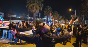 Activistes propalestins tallen el trànsit davant del Palau Blaugrana per protestar...