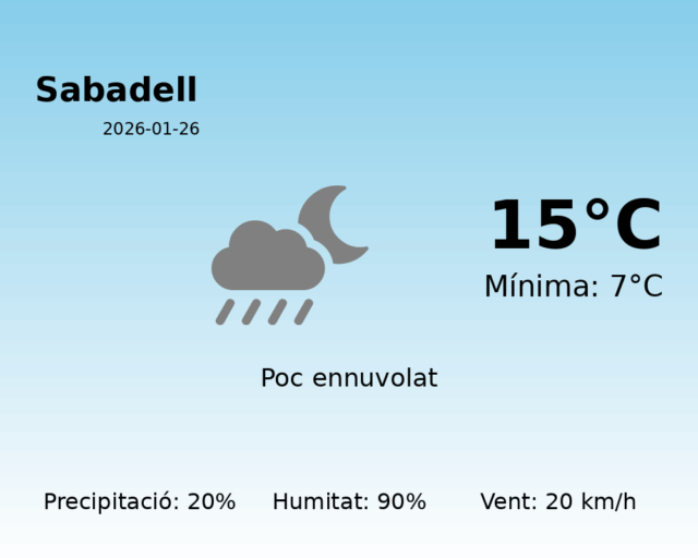 Predicció del Temps per a Sabadell – 26 de gener de 2026