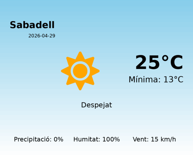 Predicció Meteorològica per Sabadell – 29 d’abril de 2026
